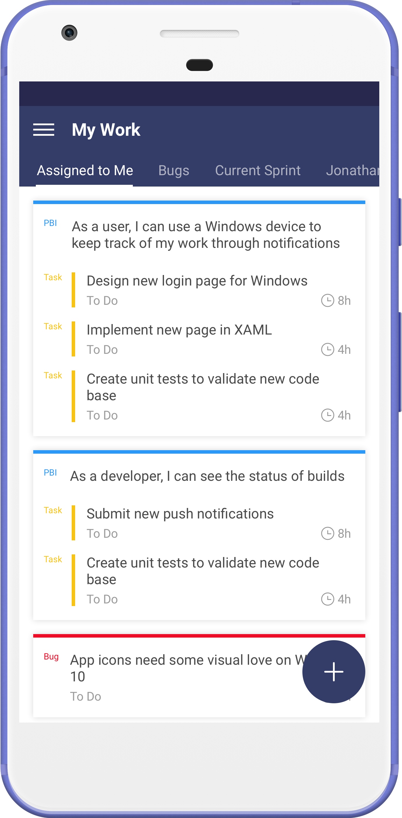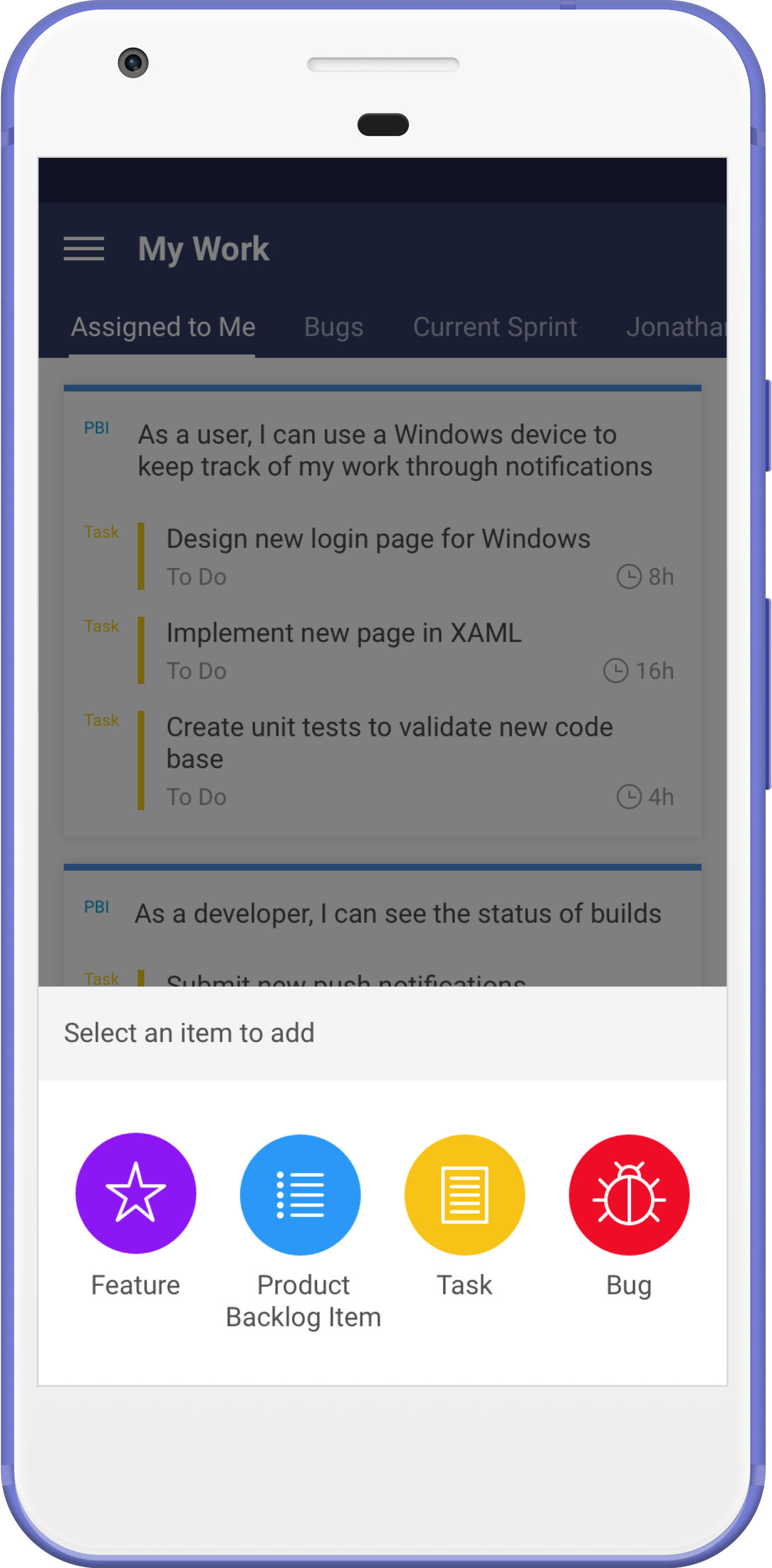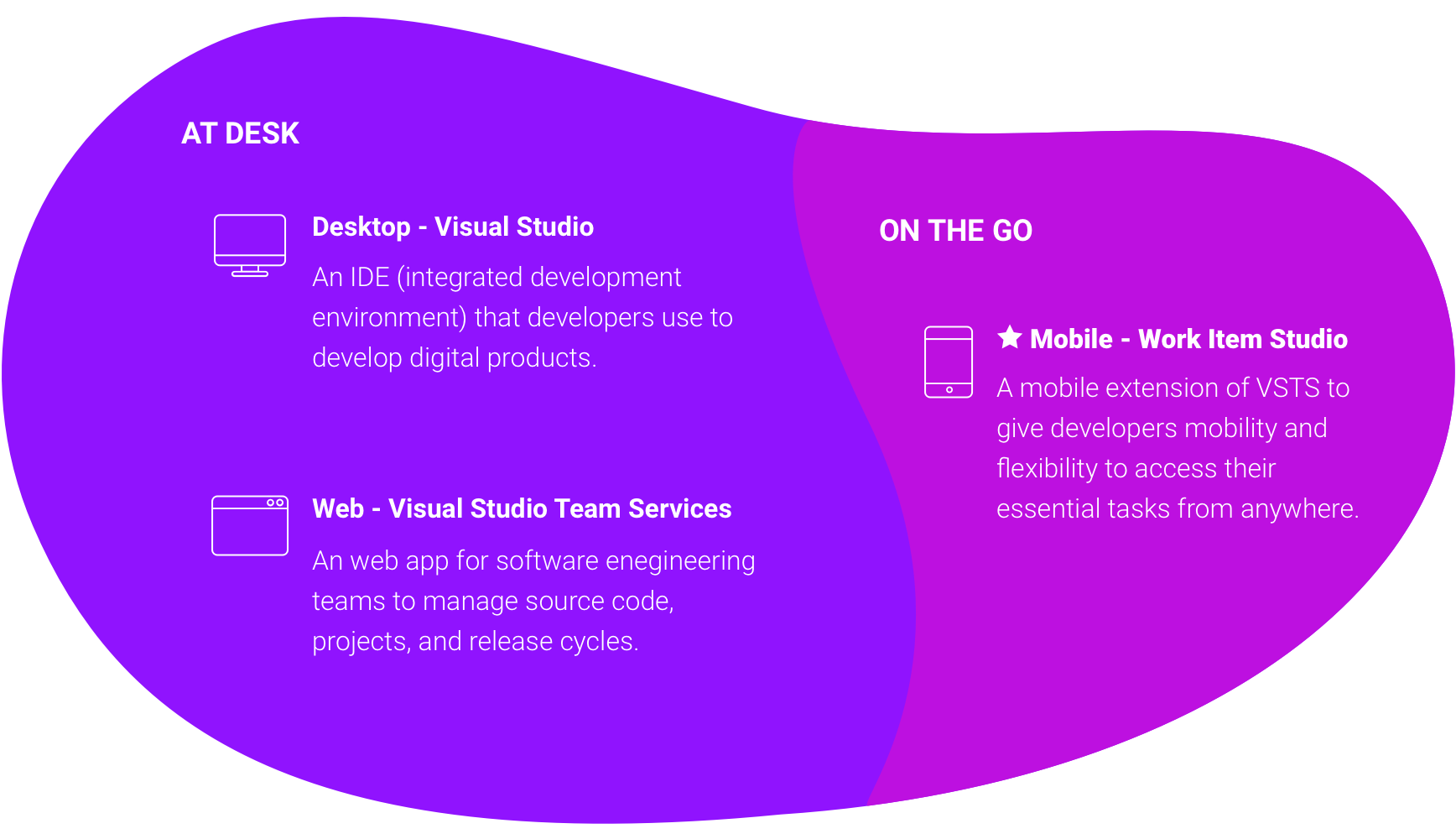 Engineering teams have been using VSTS (Visual Studio Team Services) web app to manage source code and projects on their laptops at the their desks. However, work topics and changes happen unexpectedly in scrum meetings and hallway conversations. It is annoying to remember to update your tasks when you go back to your desk. It is more frustrating when you forget. Work Item Studio, the mobile app, is made to fill in this gap of needs and embrace the dynamic work environment. The app has features and personalized views that tailor to each developer’s habits and needs when they are away from their laptops.