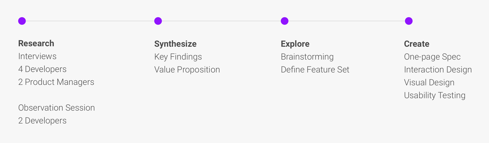 In my four-month intern, my mission is to solve the navigation problem and discover latent needs, then bring this app to Android so it can benefit more developers. For this project, we were also the users of our product. It helped us empathize with the users, but I also had to keep in mind that we should not just developing for ourselves.